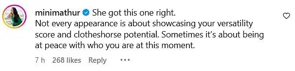ਹੁਣ ਮਿੰਨੀ ਮਾਥੁਰ ਨੇ ਡਾਈਟ ਸਬਿਆ ਦੁਆਰਾ ਸ਼ੇਅਰ ਕੀਤੇ ਗਏ ਵੀਡੀਓ ‘ਤੇ ਐਸ਼ਵਰਿਆ ਦੇ ਇਸ ਲੁੱਕ ‘ਤੇ ਟਿੱਪਣੀ ਕੀਤੀ ਅਤੇ ਲਿਖਿਆ- ‘ਉਨ੍ਹਾਂ ਨੇ ਇਹ ਸਹੀ ਕੀਤਾ।’ ਹਰ ਵਾਰ ਆਪਣੀ ਬਹੁਪੱਖੀਤਾ ਅਤੇ ਕੱਪੜਿਆਂ ਦੀਆਂ ਯੋਗਤਾਵਾਂ ਦਾ ਪ੍ਰਦਰਸ਼ਨ ਕਰਨਾ ਕੋਈ ਮਤਲਬ ਨਹੀਂ ਹੈ। ਕਈ ਵਾਰ ਇਹ ਇਸ ਗੱਲ ‘ਤੇ ਨਿਰਭਰ ਕਰਦਾ ਹੈ ਕਿ ਤੁਸੀਂ ਇਸ ਸਮੇਂ ਕੌਣ ਹੋ, ਇਸ ਲਈ ਥੋੜ੍ਹਾ ਜਿਹਾ ਸਰਲ ਰਹੋ।